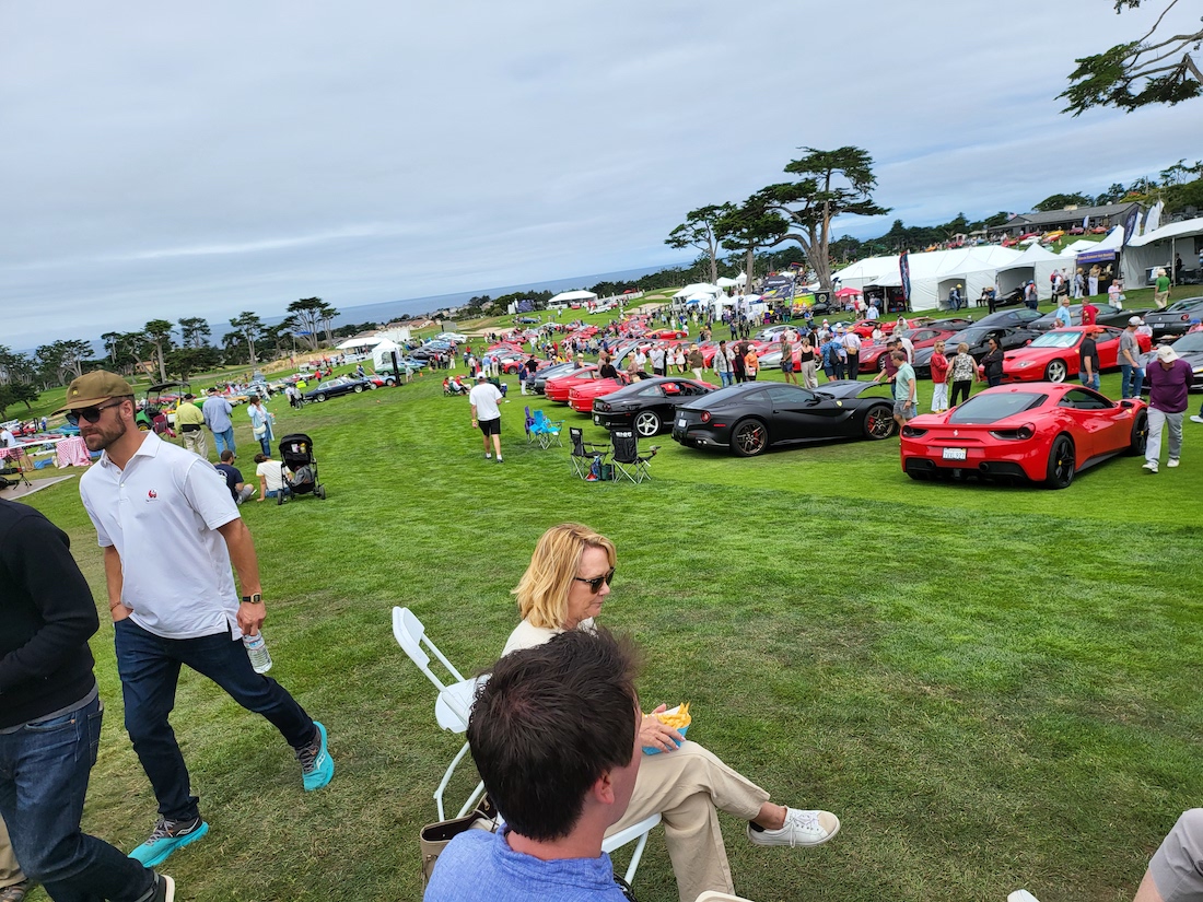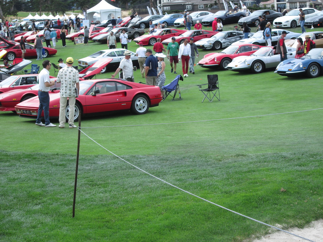Compared to the old days of Concorso there were few booths and none selling books or leather jackets or all the things I associate with being a sports car fan. The setting, though at the same golf course as before, is higher up in altitude so you can see a bit of the Pacific Ocean and that makes you feel more excited–you are at not only a sports car event, but sun and sea!
