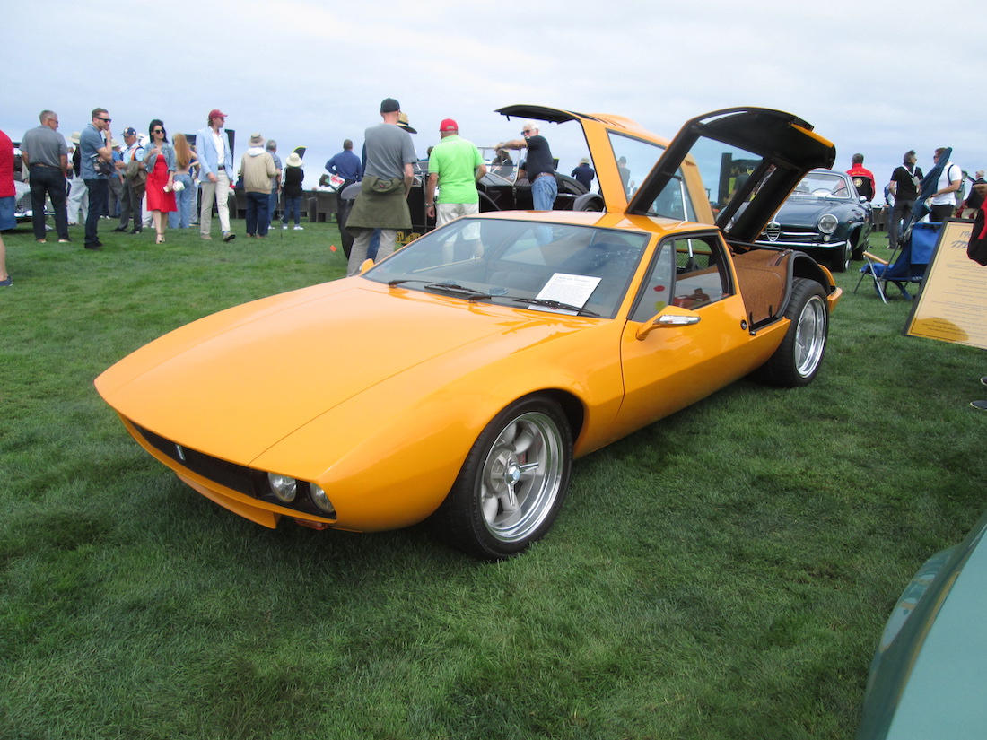DeTomasos were another marque, besides Iso and Bizzarrini, with American made V8 engines.There weren’t many Panteras shown but there was a Longchamp convertible a model never officially imported to the US. But it is of the flat plane school of design so wasn’t as sexy as the all curves school, alas. No full DeTomaso GT4 race car either which would wake people up to their racing history. A yellow Mangusta was overwhelmingly beautiful.