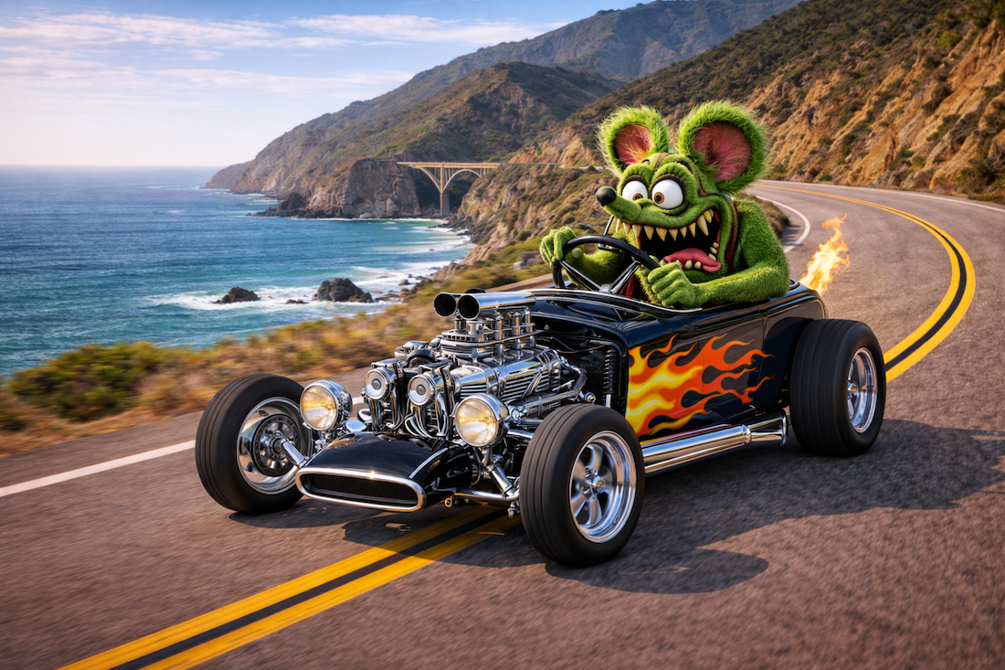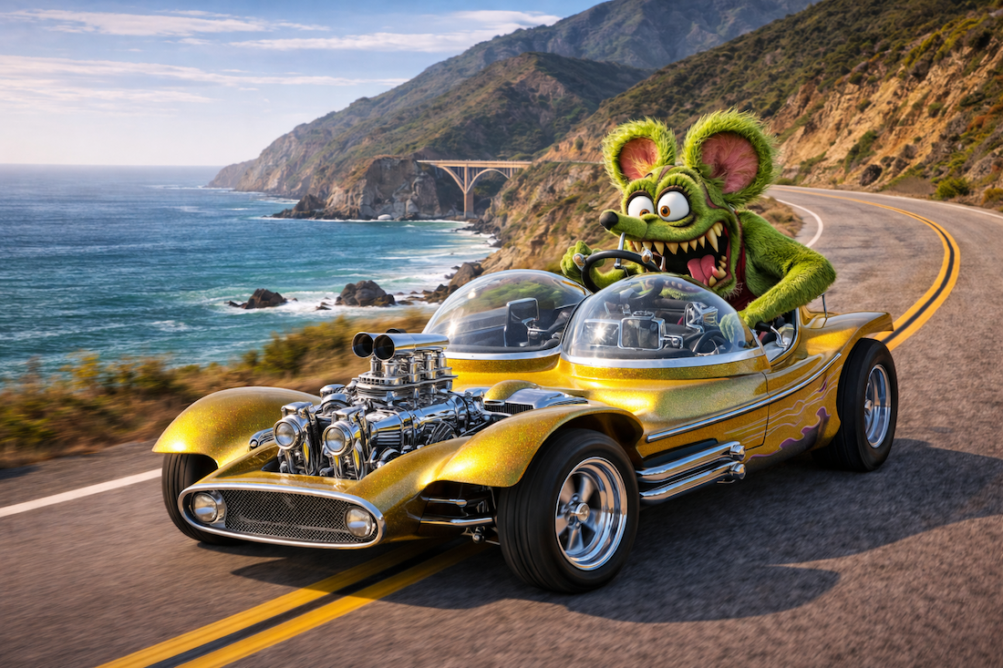 Roth’s genius lay in his refusal to separate cars from art. His vehicles were not meant to blend in or even necessarily drive well. They were meant to provoke emotions and thoughts. They asked the viewer to reconsider what a car could be. This philosophy spilled into his artwork, especially Rat Fink, which captured the rebellious, mischievous energy of hot rod culture better than any polished photograph ever could.