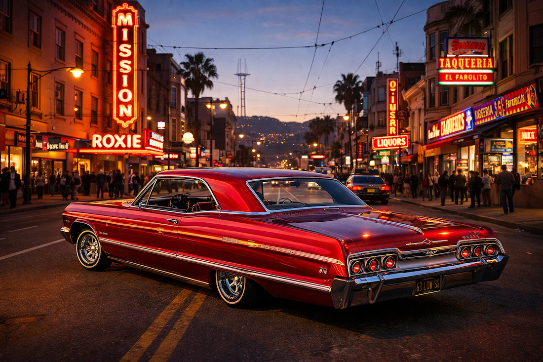 Instead of going faster, the goal was to cruise in style, with dignity, and presence. Early builders lowered their cars using sandbags, cut springs, or custom suspension work. The preferred canvas became the full-size American car—especially 1950s–1960s Chevrolets like the Bel Air and Impala—because of their long lines and attractive body shapes.